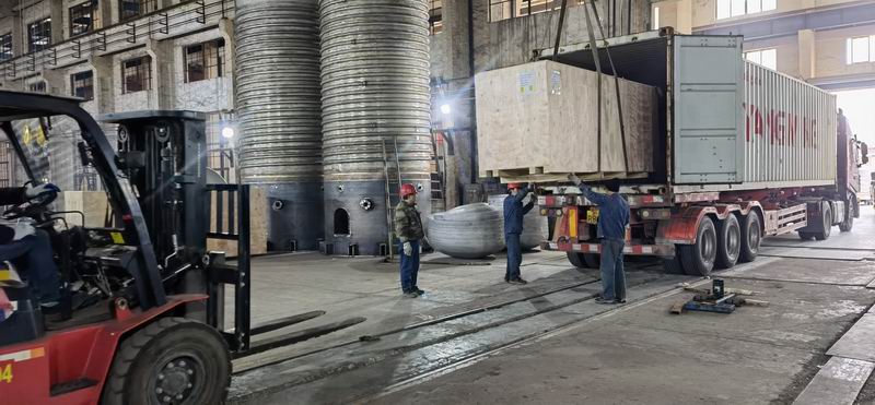 中鼎承接泰国某企业11台列管式换热器装车包装过程
